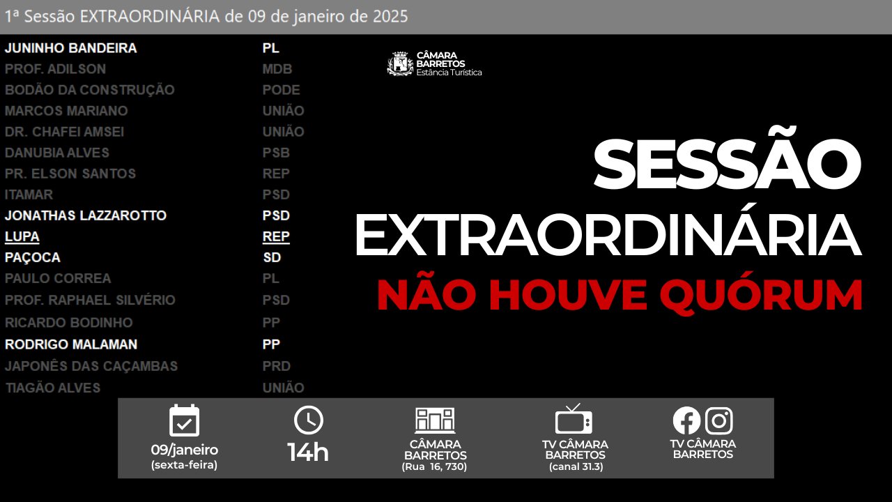 Confira os resultados da Sessão Extraordinária realizada nesta quarta-feira, 14 de janeiro