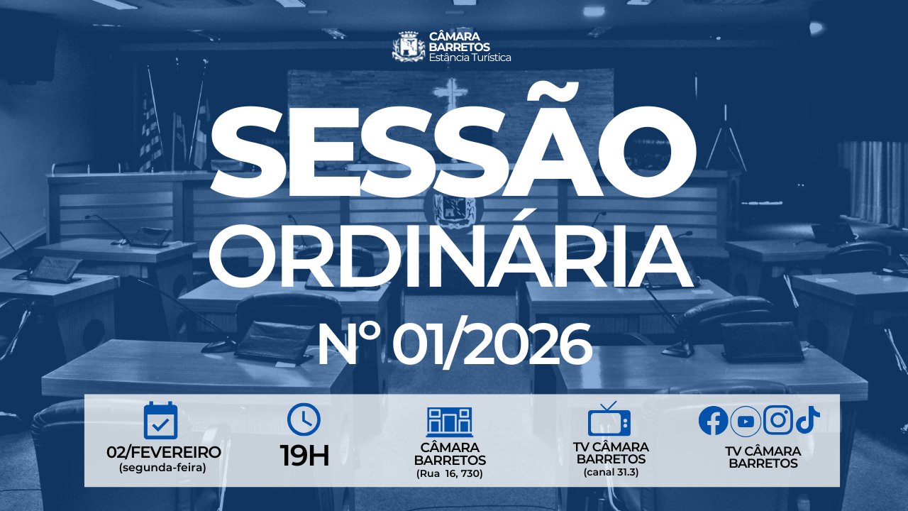 A Câmara de Barretos realizou na manhã dessa quinta-feira (12/fevereiro), às 10h30min, a 3ª Sessão Ordinária de 2026. Foram discutidas e votadas 05 matérias: 3 Projetos de Lei e 2 Projetos de Lei Complementar.