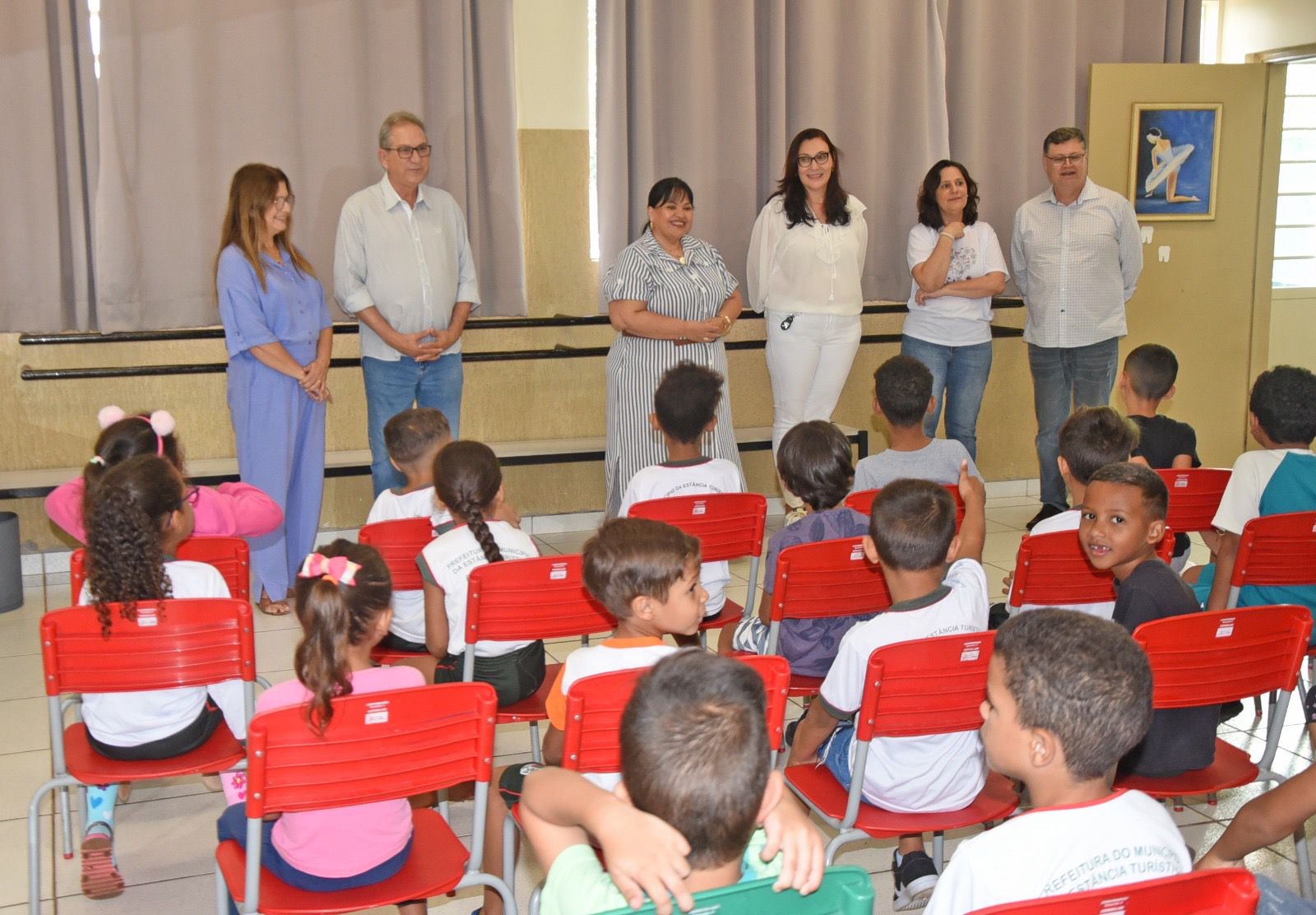 O prefeito Odair Silva e a primeira-dama, Roselaine Silva, acompanharam a ação na E.M. Profª. Maria Alves Barcellos de Oliveira, no San Diego, juntamente com o secretário municipal de Saúde, Angelo Roberto Gonçalves, a coordenadora da Saúde Bucal no município, Alessandra Balbo e a equipe da unidade escolar.