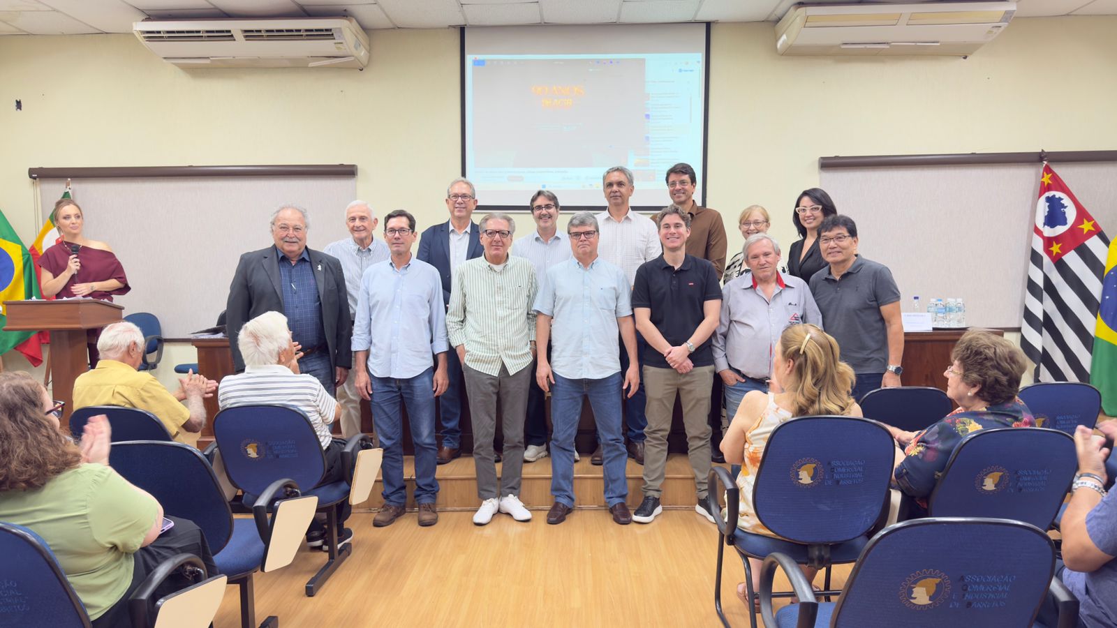 A mesa solene foi composta pelo prefeito de Barretos, Odair Silva; pelo vice-prefeito Mussa Calil Neto; pelo presidente do Sincomercio e tesoureiro da ACIB, Roberto Arutim; pelo presidente da Câmara Municipal, Luis Paulo Vieira; pelo ex-presidente da ACIB, Caio Miziara (gestão 2024/2025); e por Edson Abe, representando o presidente da CDL, André Peroni.